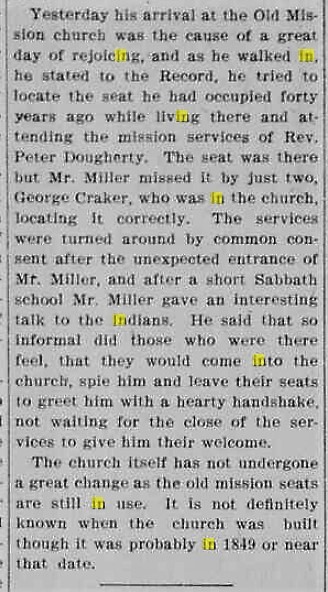 In 1852 Rev. Dougherty and many of his Native American followers moved across the bay from Old Mission and established their New Mission in what would become Omena. The New Mission church was dedicated in 1858.