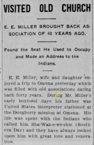 Edward Eugene Miller was the son of a fur trader from Canada who moved around eventually landing in Old Mission where he was a fur trader and government interpreter of the Odawa language
