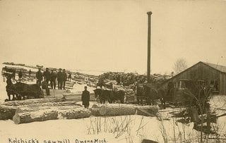 In 1904 Joseph Kalchik became the owner of the only permanent sawmill in the area located two miles west of Omena. He employed ten men and must have done a thriving business until the sawmill burned down in 1907.